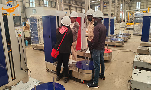 Nick先生和Angela小姐向客戶詳細(xì)介紹了行李纏繞機(jī)的操作流程和使用方法,并由客戶現(xiàn)場(chǎng)操作。佳森生產(chǎn)的行李纏繞機(jī)使用起來(lái)非常簡(jiǎn)單,打開包裝插上電源即可使用,機(jī)器標(biāo)準(zhǔn)電壓為220V或110V 50Hz/60Hz。