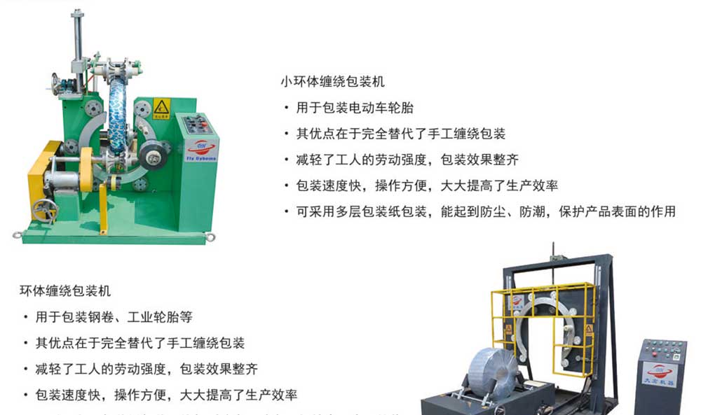環(huán)體纏繞包裝機(jī)是專(zhuān)門(mén)為鋼圈、鋼絲、銅絲、輪胎、帶鋼等金屬環(huán)狀物品而設(shè)計(jì)、制造的一種新穎的纏繞包裝機(jī),其優(yōu)點(diǎn)在于完全替代了手工纏繞包裝,包裝速度快,操作方便,大大提高了生產(chǎn)效率,減輕了工人的勞動(dòng)強(qiáng)度。包裝效果整齊。可采用多層包裝紙包裝,能起到防塵,防潮,保護(hù)設(shè)備表面的作用。