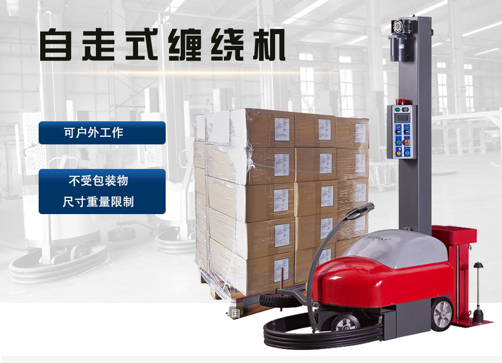 自走式纏繞機SCR-600不受貨物尺寸及重量限制,滿足各種不同形狀包裝物,自動化程度高,